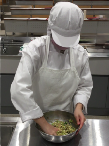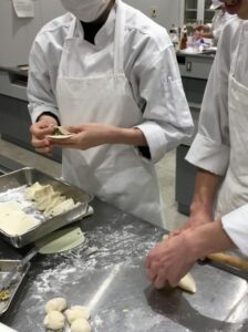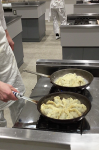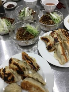 1年生最後の調理学実習は中国料理「鍋貼餃子(焼き餃子)」と「炸醤麺(北京風肉味噌和え麺)」でした。