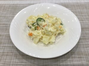 「キーマカレー」はターメリックライスと合わせてとても華やか!外食や中食の定番の「ポテトサラダ」は美味しいけれど、1人で手作りするのはちょっと大変です💦でも調理実習ではみんなで作業を分担できるので大丈夫!