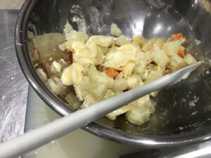 今週は西洋料理の調理実習でキーマカレーとポテトサラダを作りました。