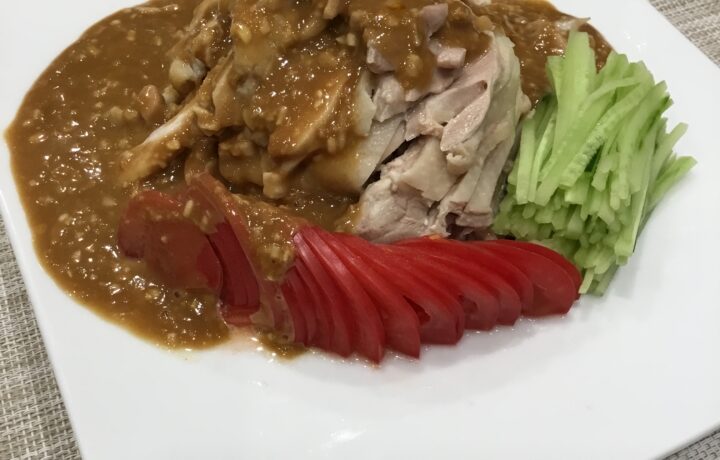 棒棒鶏は茹でた(蒸した)鶏肉を包丁で細かく切った後、芝麻醤(練り胡麻)ベースのピリ辛だれをかけて食べる四川料理を代表する冷菜です。「棒棒」という名前は、元々、鶏肉を棒でたたいて柔らかくする調理法から名づけられたそうですよ。