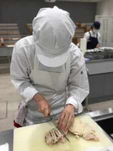 調理のポイントは、かに玉を中華鍋でふんわりま~るくまとめるところや、骨付きもも肉の骨の外し方や鶏の冷やし方、盛り付け方など、たくさんありまして…