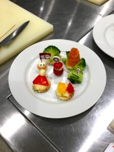 それから調理台に移動してクリスマス🎄をモチーフとしたクリスマスオードブル【ピンチョス】をお作りいただきました。