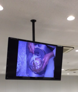 東京栄養専門学校の調理室は大きなモニターでとても見やすいです。