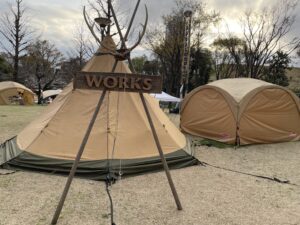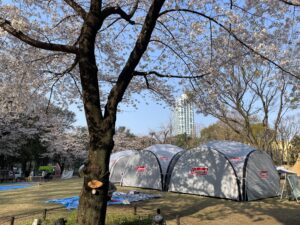 満開の桜のなか、新宿中央公園にはたくさんのテントが並び、ひとつひとつはアウトドアギアの専門店、オーガニックのマルシェやワークショップなどなど…。みているだけとても楽しいです。キッチンカーも充実していました。