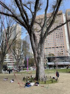 普段、新宿中央公園で木登りはできないのですが、この日は特別にツリーイングやバンジージャンプができるイベントも開催されていて、子どもたちも大喜びです。